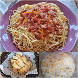 ☆トマトとツナの冷製パスタ☆白パン☆じゃが芋とコーンの豆乳スープ