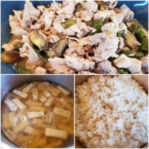 ☆玄米入りご飯☆えのきの澄まし汁☆豚肉と茄子の味噌炒め