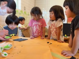 手形を取ったり、図案になっていたお神輿がだんだんと形になってきました。
