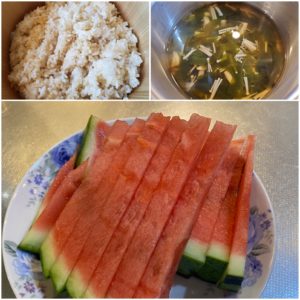 ☆玄米入りご飯☆えのきの澄まし汁☆スイカ