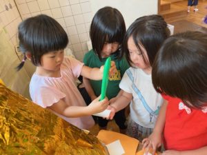 今週の金曜日(7/4)は七夕まつりです。みんなで作っているお神輿は間に合うか⁈
