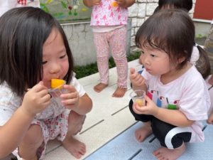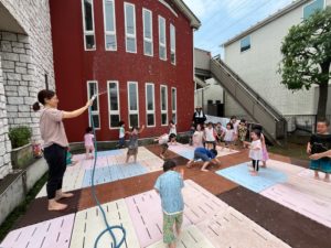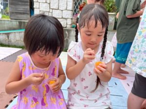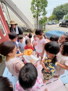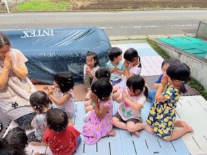 神様にプール遊びが事故なく楽しめますようにとお願いをしました。