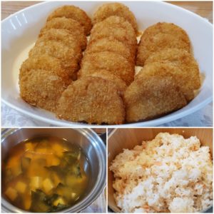 ☆コロッケ☆鮭ご飯☆豆腐とわかめの味噌汁