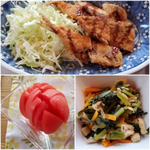 ☆アジフライ☆千切りキャベツ☆小松菜の煮浸し☆冷やしトマト