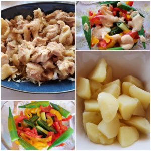 ☆鶏肉の生姜焼き☆夏野菜スティックサラダ(味噌マヨ/カレードレッシング)☆蒸かしじゃが芋