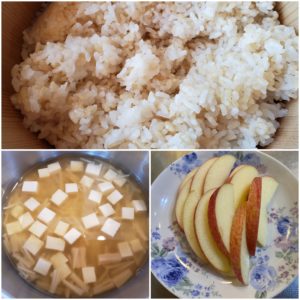 ☆玄米入りご飯☆豆腐とえのきの味噌汁☆りんご