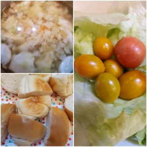 ☆ロールパン☆餃子スープ☆トマトとレタスのサラダ