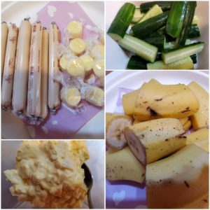 ☆胡瓜☆卵サラダ☆魚肉ソーセージとチーズ☆バナナ