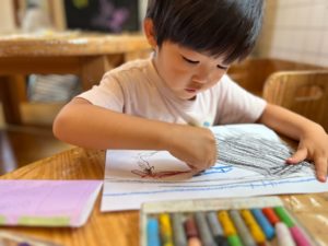 同じく間違い探しを描き始めた3歳児の男の子