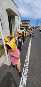 今日の避難訓練は、〝いざという時の避難の方法を知り落ち着いて行動できるようにする〟事と〝保護者の方との災害メールのやり取りがスムーズに行えるか〟を目的に行いました。保護者の皆様、御協力ありがとうございました。子ども達は、散歩に出る準備をしている時にサイレンが鳴ると、素早く頭を隠せる場所に避難することが出来ていました。隠れている間もスタッフからの指示が出るまで静かに待つことが出来るようになっています。これは日々の積み重ねがあってこそだと思いました。大きい子達は特に落ち着いて行動しよく話を聞いていました。いざという時に自分の身を守るための行動がとれるよう、これからも訓練を続けていきたいと思います。