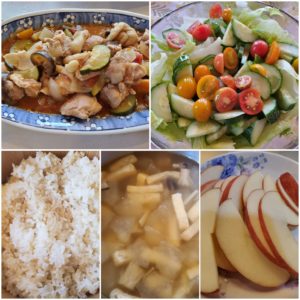 ☆玄米入りご飯☆冬瓜ときのこのスープ☆りんご