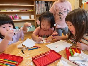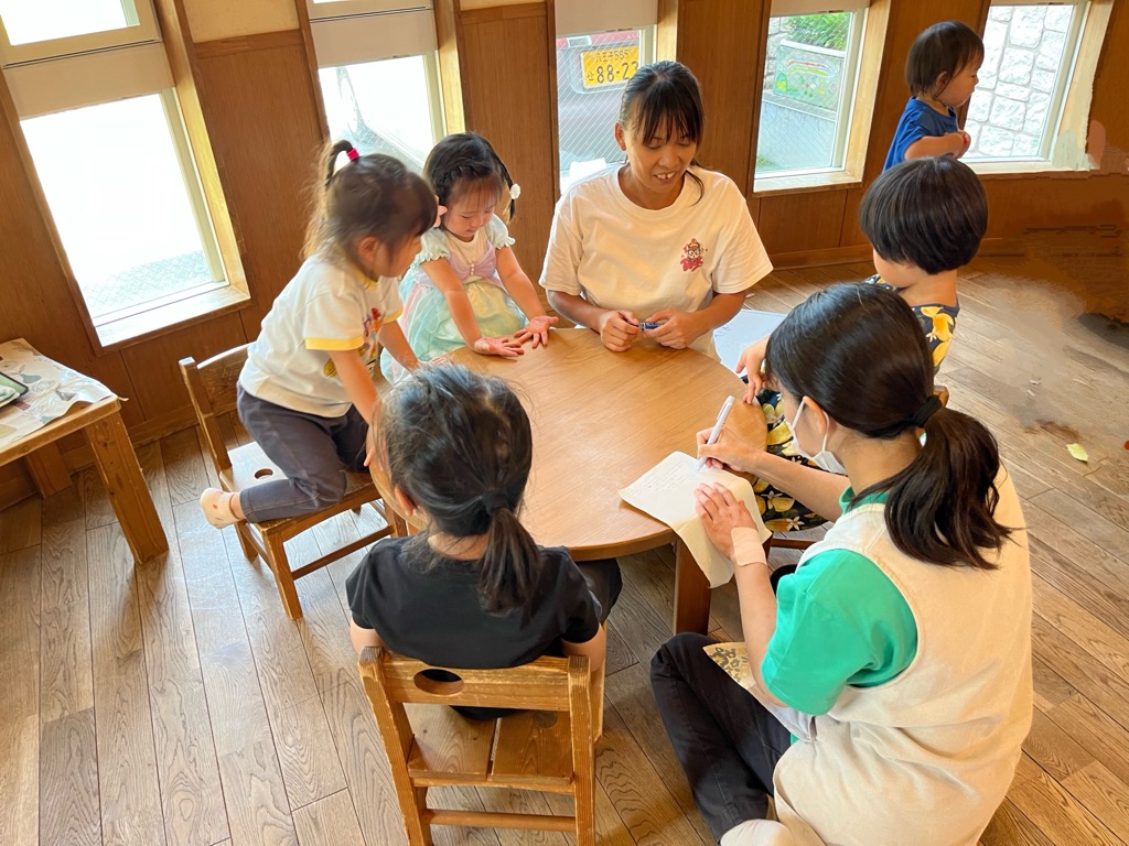 年長さん、年中さん、3歳児の子たちが色々意見を出し合ったり