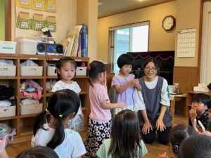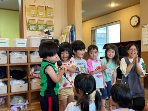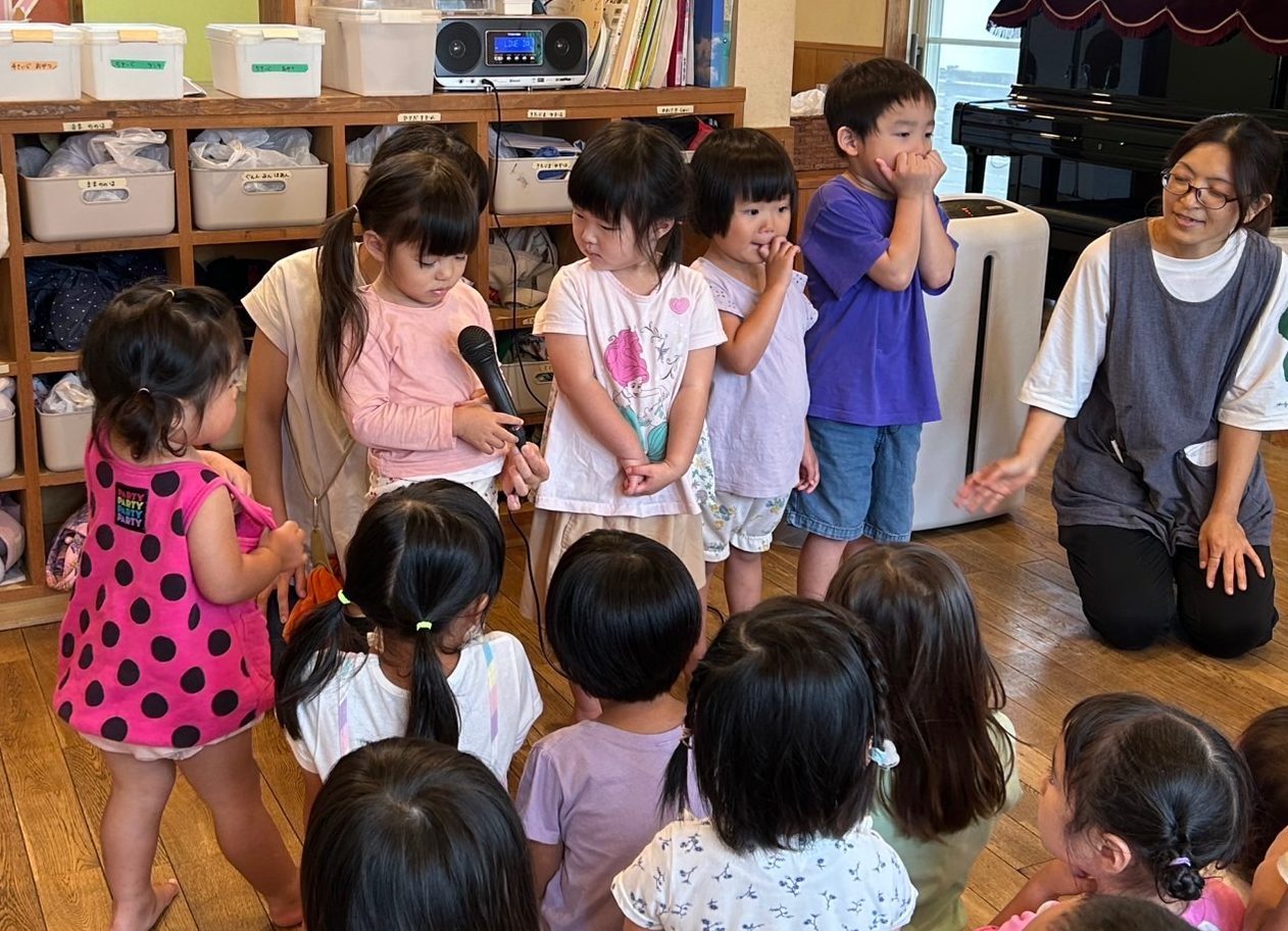 一人ずつ自己紹介もしました。3歳の子たちもしっかり自分の名前がいえていました。