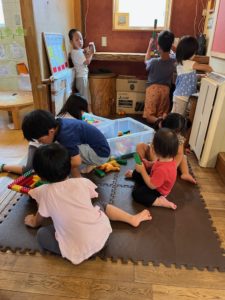 さっぱりした後はみんなブロックコーナーに集まりそれぞれのイメージを形にして楽しんでいました♪