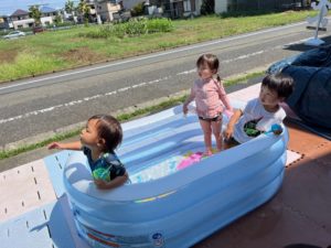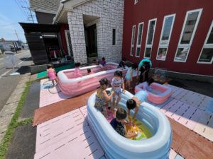 大きい子達もプールで水しぶきを挙げながら水の感触を楽しんだり