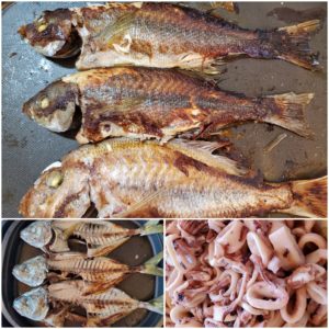 ☆鯛とイサキの塩焼き☆ケンサキイカのサッと炒め☆シマアジ(中骨)の塩焼き