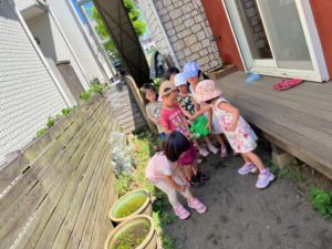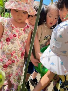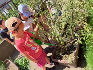 急いでお水を運んで水やりをしました。
