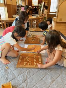難しい漢字の駒に苦戦しながらも見本を見ながら完成させていました👍
