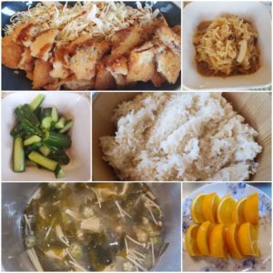 ☆ミックスフライ(鯵・白身魚・千切りキャベツ)☆玄米入りご飯☆えのきの味噌汁☆切り干し大根の煮物☆胡瓜スティック☆オレンジ