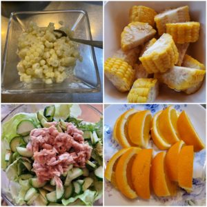 ☆とうもろこし☆ツナと胡瓜とレタスのサラダ☆オレンジ