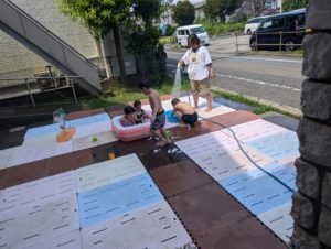 午前中は天気も良くなってきたのでのんびり水遊びを楽しんでいた子ども達です♪