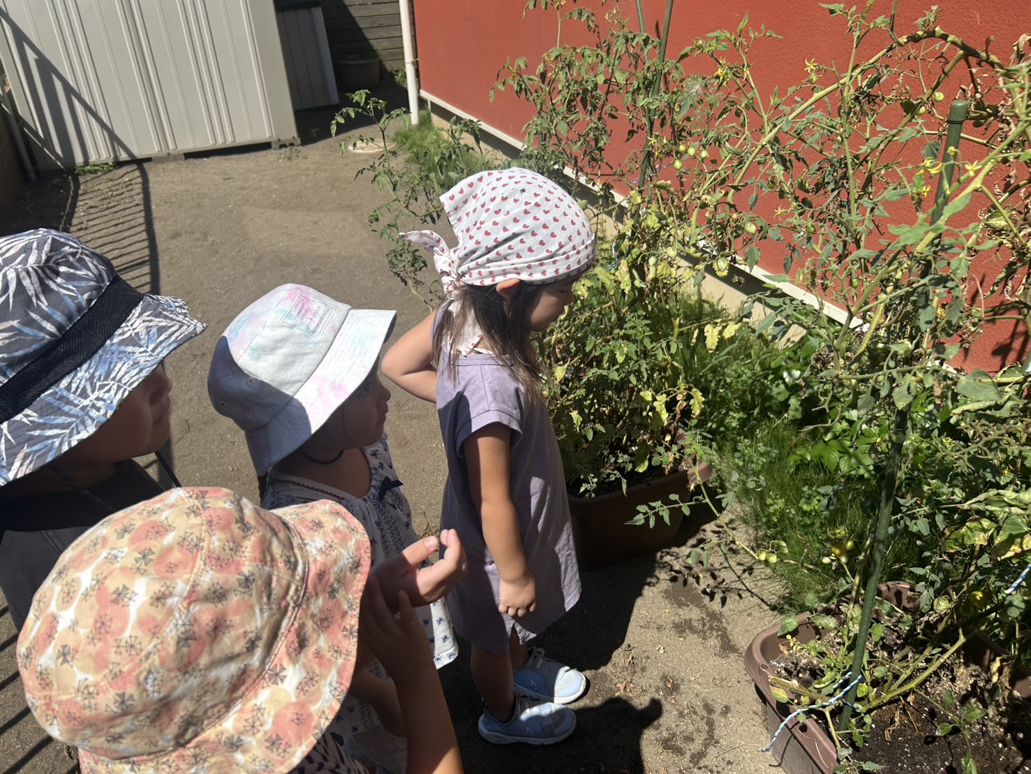 集いの後は大きい子達はミニトマトの様子を見に行きました!!
