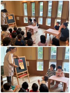お誕生日会を心待ちにしていた2人の主役さんは、ちょっぴり恥ずかしがり屋さんで最初は緊張した表情を見せていましたが、シルエットクイズでは笑顔もこぼれ、みんなと一緒に楽しんでいましたよ♪