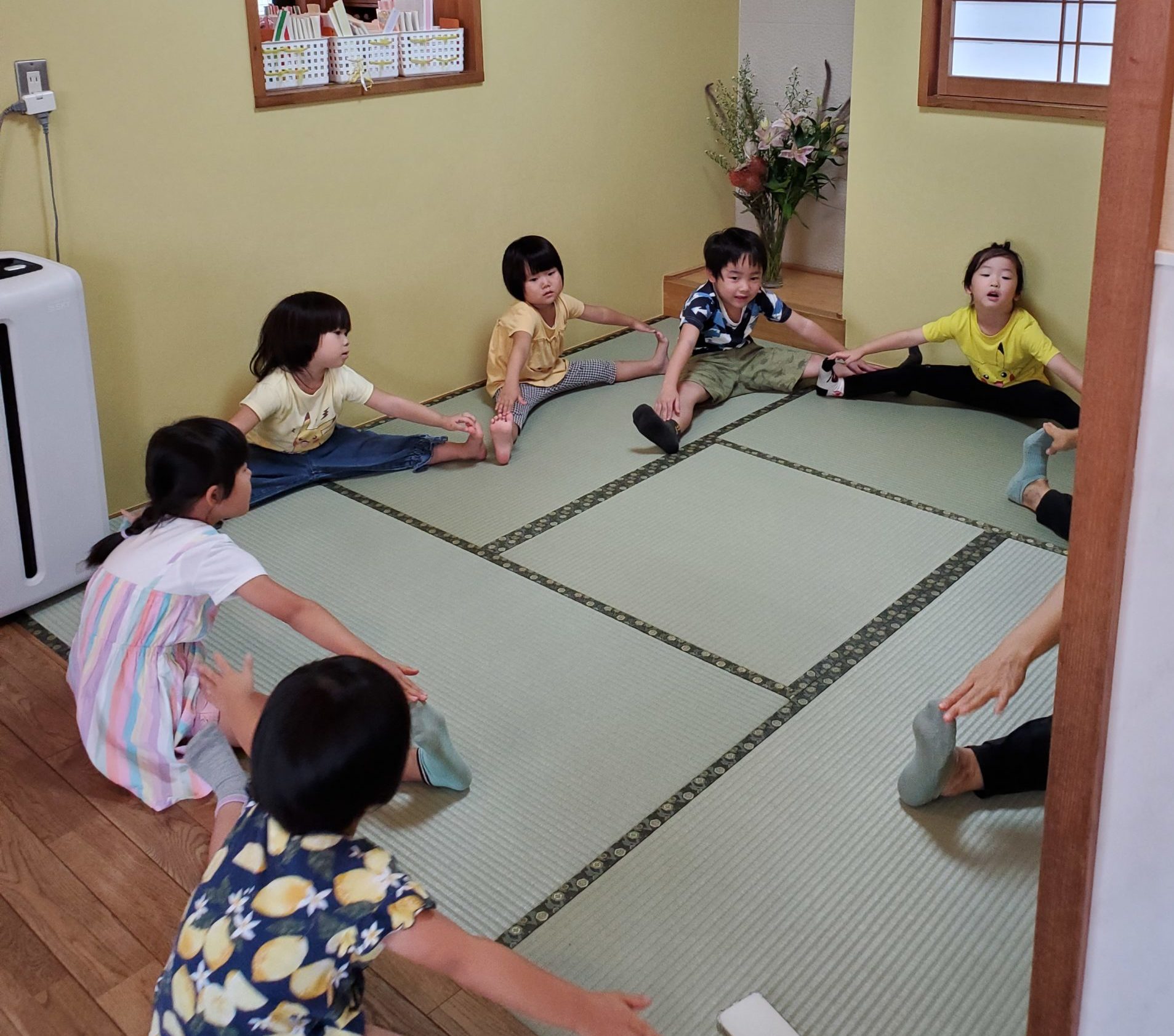 前回話をしていた運動前に身体をほぐすことを覚えていた子ども達。手首足首、関節、筋…体の仕組みも学びながらストレッチと筋トレを少しやってみました。足が速くなるために真剣に取り組む子ども達でした✨