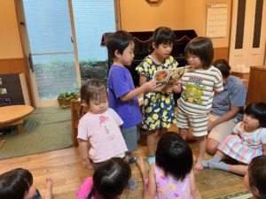 大きい子達が考えたメニューの週は年長さんが代表してメニュー発表をしてくれます!