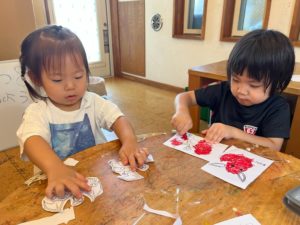 アトリエ室では自由に塗り絵や製作を楽しむ子ども達。