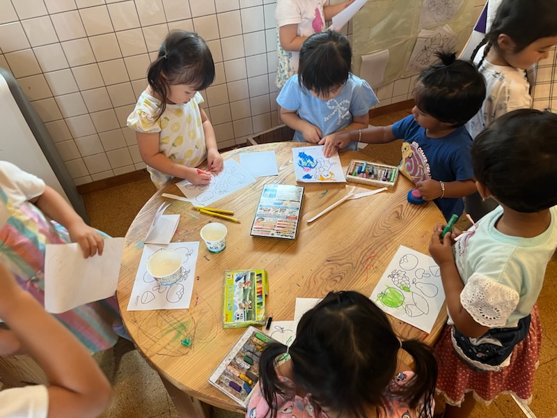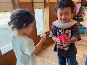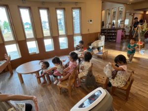 今日も残暑が厳しい1日でしたが季節の変わり目で体調が今一つの子ども達が多く、水遊びはひと休みする事にしました。