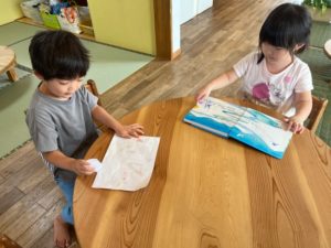 3歳児の男の子が描いた迷路はお友達にも人気で「やってみた~い」と、みんなで楽しんでいましたよ!