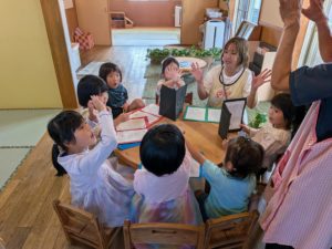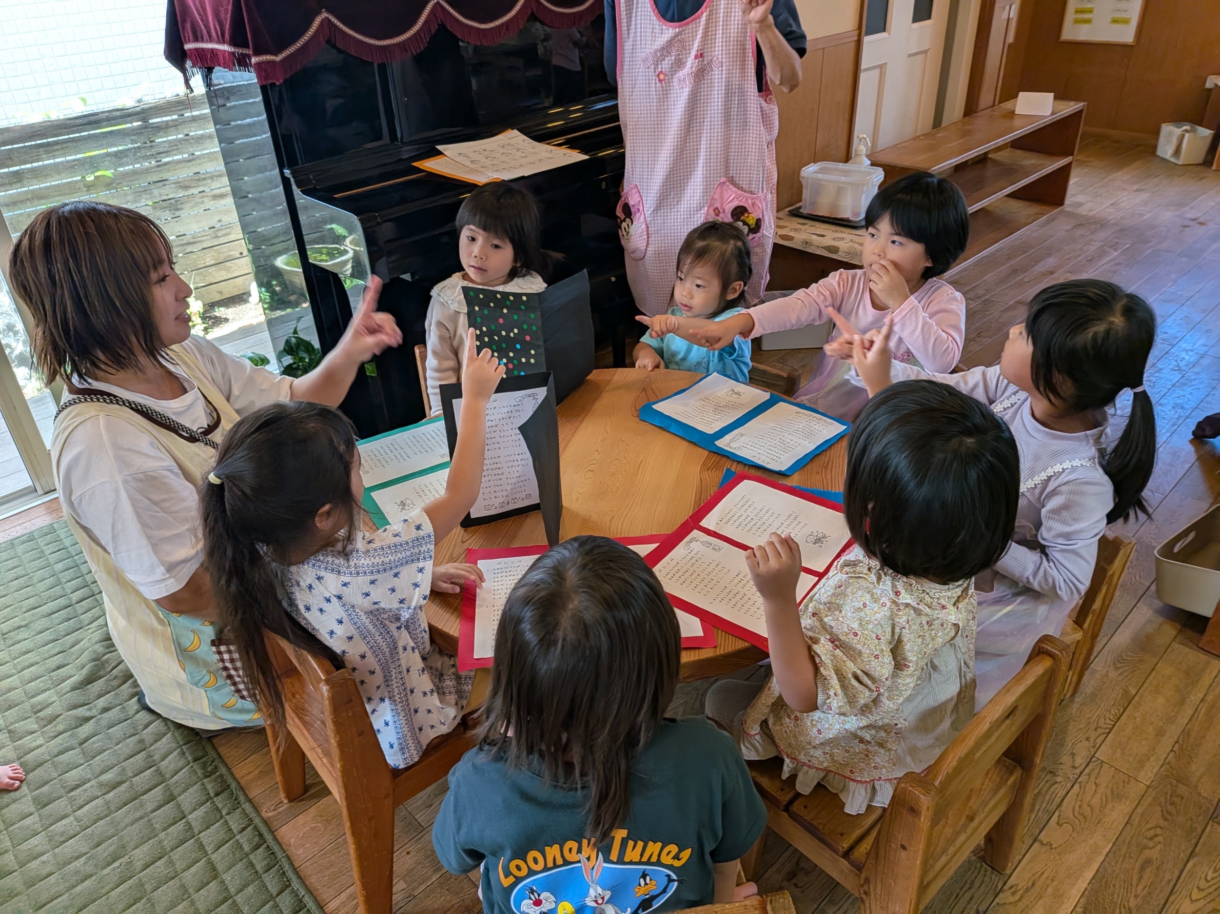 今日は大好きな『にじ』の曲を歌いながら手話を覚えた子ども達です♪世界中どんな人でもみんなで音楽を楽しめますように・・・・