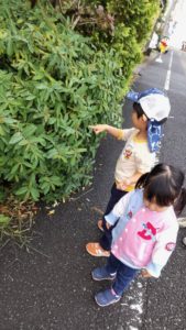 道行く人に「こんにちはー」と元気に挨拶したり色んな発見を楽しんでいた子ども達でした!