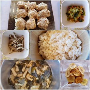 ☆手まり焼売☆玄米入りご飯☆大根の味噌汁☆小松菜のナムル☆小魚☆バナナチップ