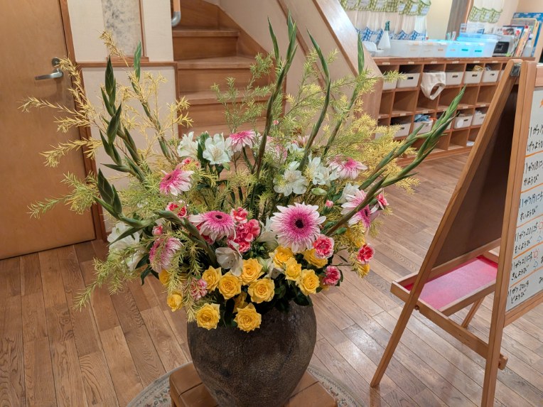 毎週火曜日にお花屋さんからどんぐりの玄関にお花が届きます。