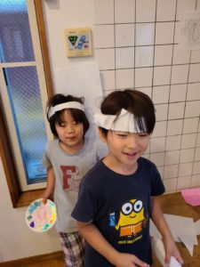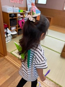 雨の日はミニ傘製作を楽しみました。傘をさして雨の中を歩いてる気分♪
