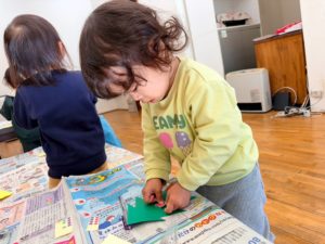 今日は1.2歳児の『アトリエの日』でした😊