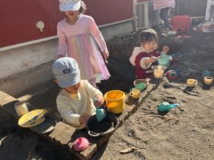 お散歩の後はお庭で砂遊びを楽しみました~😊