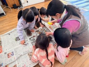 今日は4.5歳児のアトリエの日でした!この日を楽しみにして張り切って準備をして登園していた大きい子達です😊