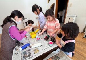 大王松の松ぼっくりでクリスマスツリー作りを楽しみました🎄