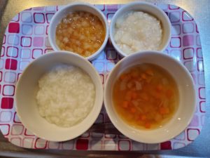 【後期】☆7倍粥☆野菜スープ☆鶏ひき肉とじゃが芋煮☆大根のおかか煮