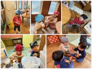 大きい子達の姿を真似して、小さい子達も楽しそうにお掃除していました