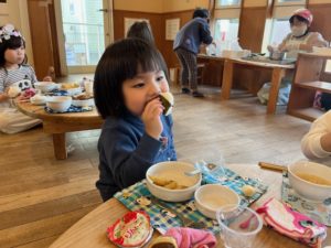 年末で疲れも見られる子ども達のためにランチはホカホカおにぎり屋さんをオープンしました♪