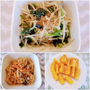 ほうれん草ともやしののり和え 切り干し大根の煮物 甘夏