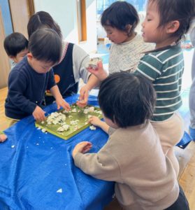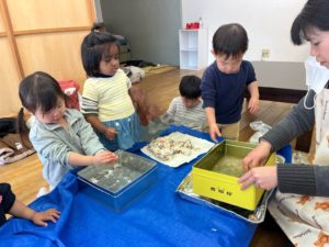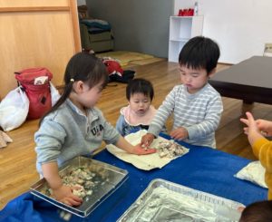 糊の量がちょーっと足りず思いのほか粘りは出ませんでしたがあまり味わったことのない感触を楽しみながら、手で握ったり固めたり塊を重ねたりして楽しんでいました!