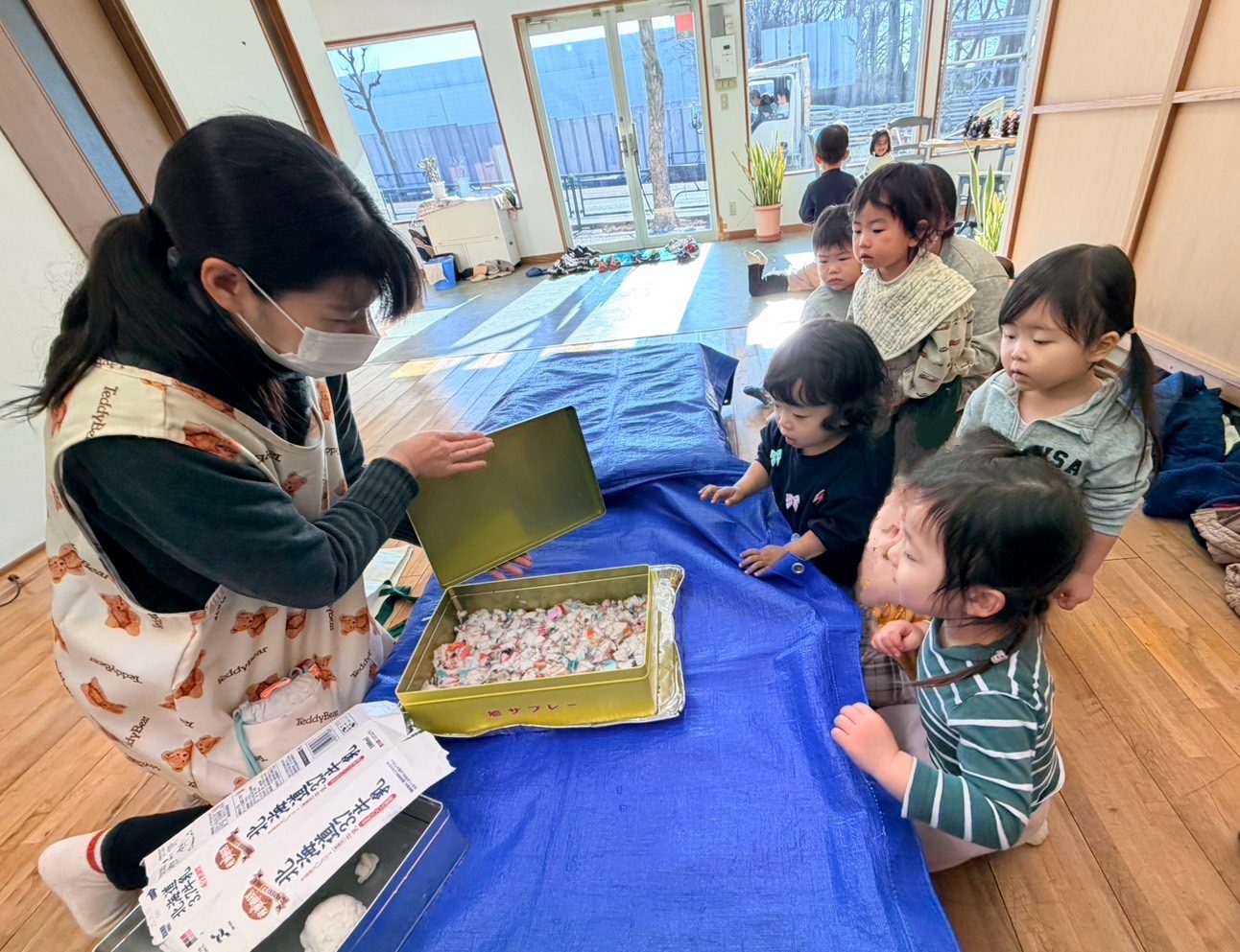 ちぎった紙を水でふやかし糊を混ぜて手作り粘土を作ることに挑戦!