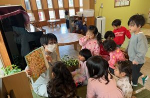 絵本コーナーでは絵本を読んでもらいお話の世界観を楽しみました。
