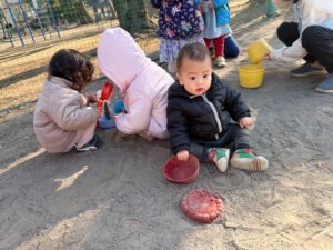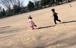 グラウンドで沢山遊んでみんな砂ぼこりで真っ白けでした~😅