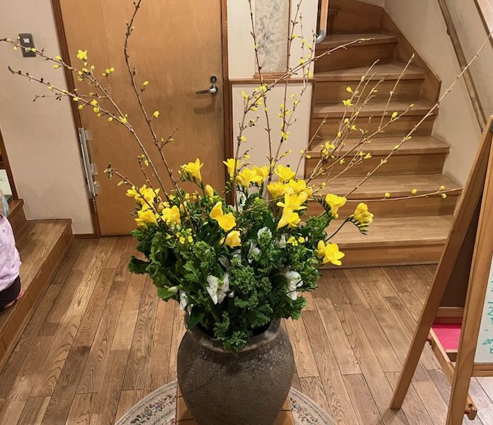 毎週火曜日にお花屋さんからどんぐりの玄関にお花が届きます。